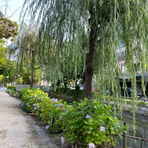 おはようございます! 昨日は久しぶりのいいお天気🌞 今日も暑くなりそうですね😅 柳に紫陽花🟢 先日、夕刻に涼やかな写真が撮れました📸 皆さん、良い週末を!🍀 西川緑道公園にて
