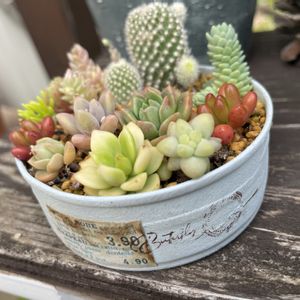 ツナ缶リメイクの寄せ植え💓 後ろのバニーカクタスがお気に入り☺️