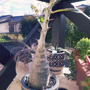 パキポディウムサンデルシー 白馬城 南アフリカ原産 マダガスカル産のパキポは寒さにはめっぽう弱いけど サンデルシーは 日本の越冬ならへっちゃら😋 でも何年かかるかなー あの魅力的な姿になるまでに💦