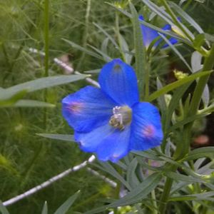 おはようございます😃 ニゲラ ブルーミゼットです💙 ようやく咲き始めました😊 このニゲラは草丈が30センチくらいで コンパクトなタイプです☺️ タグには『風にゆらゆら』とありますが 草丈が短いので 昨日の強風でも びくともしませんでした😅