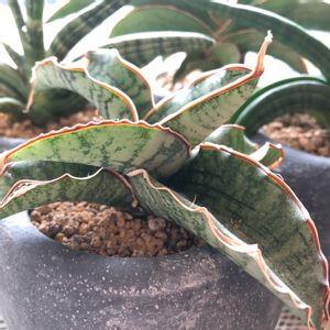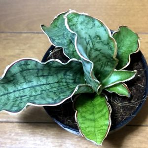 おはようございます(´∀`*) 今日は青空、室内の日向はあったかい🌞 わが家は今のところ暖房要らず 光を浴びたキルキーシルバーブルー 2色の縁取りのウエーブがきれいです( ´⚰︎` ) 外はすっかり寒くなったけど サンスベリアをはじめ、夏型の子たちも まだまだお水を欲しがります