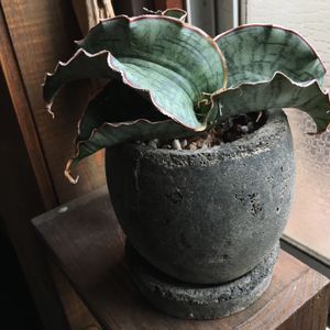 サンスベリア キルキーシルバーブルー 物凄く肉厚で、なんとも言えない独特な色。 素晴らしい。 鉢と相まってタイにいた時のことを思い出す(。-`ω´-)