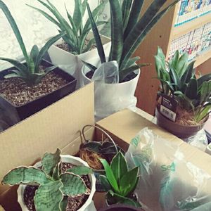 気づけばサンスベリアだらけ。 本日届いた新人達。 マッソニアーナ800円 キルキー シルバーブルー1200円 ムーンシャイン 貰い物 ネット購入は本体安くで買えた!って思っても、送料が本体と同じくらいかかるのが貧乏性には辛いシステムですね(´-`)