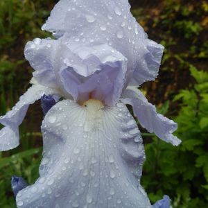 💠ドイツアヤメ 別名ジャーマンアイリス💜🤍💜 夕方仕事帰りの🚙から降りて、雨に濡れる綺麗なお花と一時過ごし、癒されました (∩˘ω˘∩ )♡
