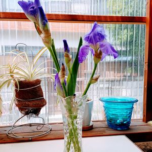 我が家のジャーマンアイリス 次々と開花中! 明け方の雨で濡れて雨粒をまとってます😉