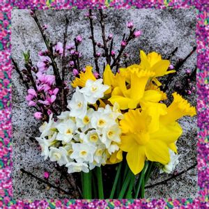 今日は春分の日 お墓に持っていく前にパシャッ!📱 全部、ウチの畑のお花です(*^^*) 怪しい空模様なので、急がないとねぇ ⋆̩☂︎*̣̩•*¨*•.¸¸→=͟͟͞͞ ( ˙꒳˙)イソゲ