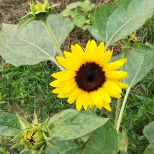 ウチのぬかるんで、グチョグチョの畑 雑草ばかり元気な畑 畑に、最初のひまわりが咲いたよぉー🌻🌻🌼🌼🌼🌻