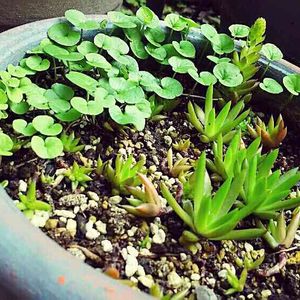 爪蓮華のポイポイ鉢に丸い葉っぱ(名前忘れた)もやって来て賑やかに…(*´艸`*)