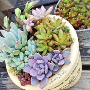 昨日購入した多肉を寄せ植えしました🌵 木立ちしたのを切りたくなかったので植えるの大変でしたが、二和園さんの苗はどの子もかわいい😊 鉢も昨日、ザファームユ二バーサル千葉で買いました。いい感じの鉢はどれもいいお値段でしたが、これは比較的安くてデザインも気に入ったやつです(*´ω`*)