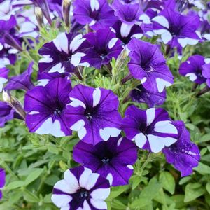 ペチュニア いちまつ💕 3回目の切り戻しからの満開です。 いちまつ、はじめの頃は紫一色で咲くことが多かったのですが、夏の盛り頃から白の柄が入り綺麗す✨✨✨