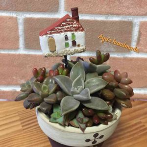 セダムだけの鉢がもりもり〰️! 小さなお家のピックをさしたら“大草原の小さな家”のよう! 🏠(*´艸`*)💓