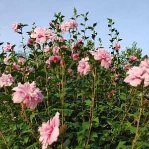朝日を浴びて✨🌿 ムクゲの花✨🌿 たくさん咲いています。🎵 おはようございます。☀️ 毎日暑いですねぇ~☀️😵💦 皆さん水分補給🥤 忘れずに 熱中症に気をつけて過ごしましょう。😊