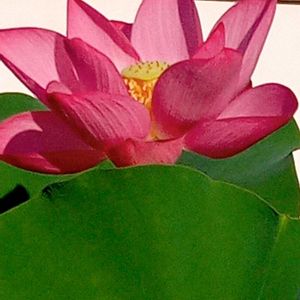 夏の名残 もうほとんど花托ばかりになった蓮の葉の中に 一輪だけ遅咲きの花 お寺の人が、花托を茎の下ほうから刈り取っているというのに 今頃咲いているんだ