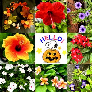 いつもありがとうございます❤️ もう10月ですね〜♪ だいぶ凌ぎやすくなってきました😊 朝晩と日中の気温差に要注意で 今月も元気に楽しみましょう💪💕 9月は家のリフォームの足場と暑さでいくつかお花を枯らしてしまい残念で可哀想でした😓 でもトレニアなど思いがけずこぼれ種から咲いたり野生のミョウガ収穫できたり嬉しいことも💗☺️ 月下美人も4回目の開花が近く楽しみです♪。 GSでもたっくさんのお花達に出会え癒され皆様に感謝です💓❤️ 自作の秋リースや今咲いてるうちのお花達からちょっと早めに Happy Halloween🎃 🏷毎月2日はスヌーピーの日 に参加させて頂きます🤗