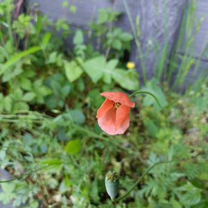 ナガミヒナゲシについては ちょっと後悔しております。 昨年どこからともなくやってきて マイ野原に咲いたひと株。 元気色だし、ひとつだけならいいかと 情けをかけたのが間違いでした。 今年は出る出る、もう大変。 こんなにも繁殖力が強くて 成長も早いとは。 うちのナガミーは7割ほどに 黒いブロッチが入っています。 ちょっと可愛いと思わせる… いや、もうその手には乗らないぞ。 と言いながらカメラ向けたりして やはり花の思う壺であります。