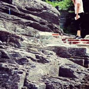 秩父紅廉石片岩! 全然紅廉石うつってないですけど。 私が乗ってる下のレンガは、橋の名残らしいです。班長曰く。 ちなみにこれは班長さんが撮ってくれました、てか盗撮されました。
