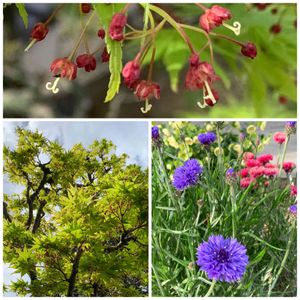昼前から雨の予報が 出ていたので9時前には 庭の手入れと花の世話も完了👍 手入れをしながら横目で 可愛い子探し❤️ 剪定後、あっと言う間に 柔らかい新緑に包まれたもみじ🍁 もみじの花もなんだか楽しそうに 見えました❣️ 矢車菊 2色揃うと綺麗さアップ⤴️です