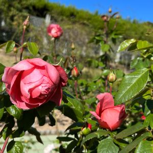 植物公園バラシリーズ④ 厳島、というバラ🌹 青い空に、映えます😊