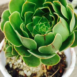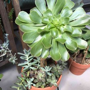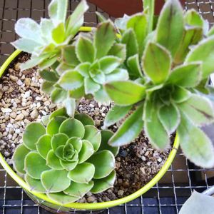 久々の投稿^^; 2月に投稿したバルサミフェルムのその後です。 アエオニウムは花が咲くと枯れると聞き不安だったのですが… 満開になる前にカット✂ 程なくして新芽がいっぱい! 間引きしなきゃと思うぐらいでしたが、 夏を超えて落ち着き画像のようになってます。 それでも6、7個あるのかな? もう少し大きくなったらチョッキン✂ですね!