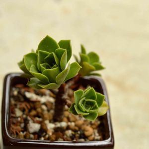 アエオニウム バルサミフェルム。 葉の先端に赤茶色の筋が入ってる。 黒法師苦手だからこの子も枯れませんように😭