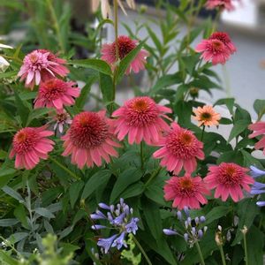 ①わい性のアガパンサスが咲いてると思ったら、四季咲きでした!サマーラブ💙秋にアガパンサスが楽しめるのは良いですね♪ ②八重の秋明菊✨そろそろ終わりなのかお安くなっていて、珍しいのでお迎えしてみました🌿 ③紫陽花こんぺいとう✨毎年秋に少し咲きます💠 ④ブルーウィング✨3年目か4年目でよく咲きます🦋