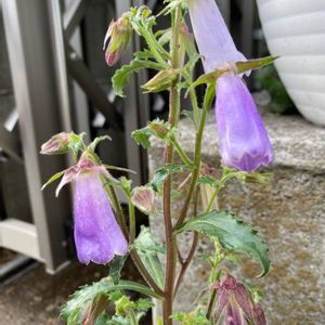 おはようございます、昨晩から風🍃 強く、今日も続きそうな予報です。花が咲き外の物置にかけてます。ツリガネソウ(皿ヶ峰ききょう)親株の回りに子株増えてる様です。🍃強い日になりますから、駐車場の中に移動します、もったいないから。