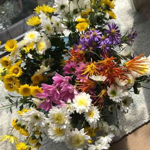 あぁ〜〜… 私の影が… アヤメ? ハナショウブ? カキツバタ? どうやら葉脈クッキリのハナショウブのようです この色のキクがたまらなく好きです♡ 数年前には庭に出ていた黄色いお花 出ては毟ってなかなかの元気者だったのですが 今回は切り花の一員としてセットされていました 名前が分かりません😅 どうぞよろしくお願いします(*☻-☻*) Gさんに教えていただきました☺️ ソリダゴというお花でした🌼 聞いたことないお花ですが🤔アレンジメントやブライダルなどに使われるお花でした あ〜スッキリした ありがとうございました☺️