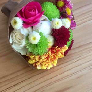 ブーケ💕 昨日のお花と10日前に買った グリーンの菊を束ねて みました