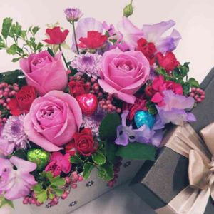 ご無沙汰しておりました😁 バレンタイン💝ボックスアレンジですよ〰️😜 ちょっと早いけど旦那様にプレゼントしました😻