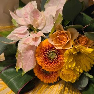 暗くなってから、孫が、こた🐶に花束を 持って来てくれた 今日のお花、ポインセチアが入っていたので 2度目の投稿♡ ありがとう🐕🌈