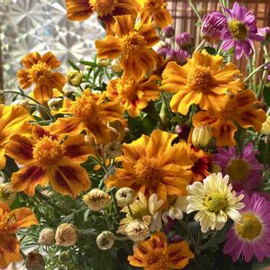 お供えに頂いたお花 名前は分からなかったのでAIに教えてもらいました。