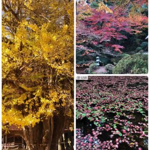 筒賀の大銀杏 知人より送って貰いました ありがたや❣ ➡️18年に紅葉狩りに行った時の写真です 池に赤くなった紅葉や緑の紅葉が落ちていてきれいだったわね〜