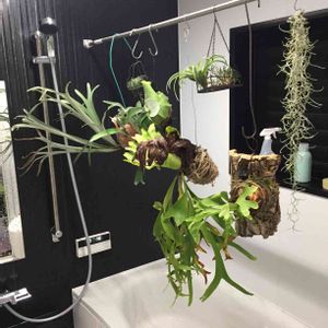 昨夜は台風で風呂場に避難してたビカクとチラ🌱 今日は外に放置😊✨