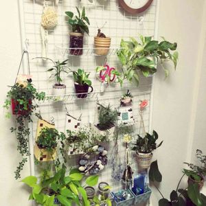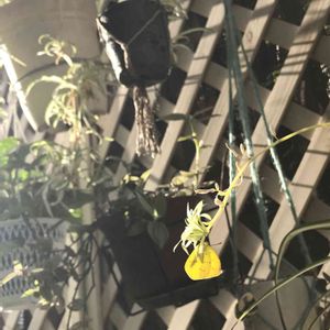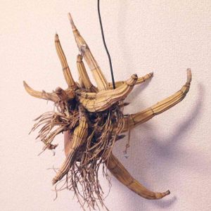 S字から下はアルミのワイヤーで作りました。 暑い間は、やわらかく明るい窓開けっ放しの…トイレに吊します。 買って3年くらいですが、少し成長しています。