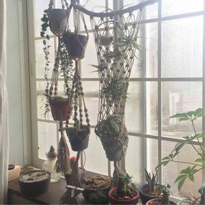 お気に入りの流木タペストリープラハン✨ ドライとの相性も👌 夏休み海に通って子供達とひろってきた流木に麻とウッドビーズでカッコ良く編んでみました💓
