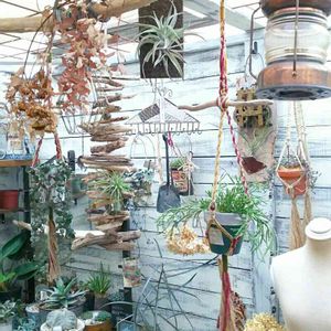 アトリエではハンギング祭り開催中ですヽ(*´∀`*)ノ 動く度に頭ぶつけます🙆 目線より上にボリュームがある空間が好きでプラハン、流木オブジェ、着生ボード、リメ缶、ドライやランタンなどなんでもハンギング🎵