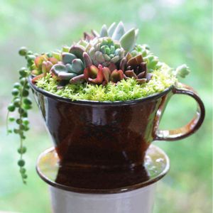 陶芸の先生に植木鉢にどうぞと失敗作のドリッパーを頂いたので早速寄せ植え♪ 水はけも良いし可愛い♪