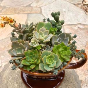 左下のカット苗に 我が家の小さめ多肉をプラスして 寄せ植え完了🌱 *しかし、小さなカット苗たち根付いてくれるかなぁ😅