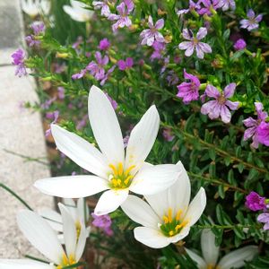 おはようございます😊 ゼフィランサスと クフェアの競演💃🎶 可愛くて笑顔になれるなぁ~😊 おさんぽコースにて🚶♀️🐾🌾