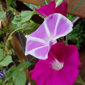今朝のアサガオ 孫娘が一年生になった夏 学校で植えたお花 種を取って毎年咲いてます 可愛いのでアイコンで使ってます