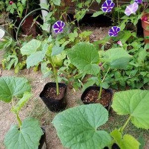 今朝の収穫 残っている🥒 それでもまだ、一本ずつでも収穫できます 朝サラダに美味しく頂きます🍴