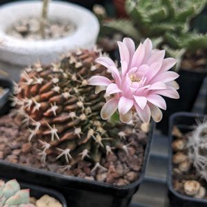 久しぶりの投稿になりました。 せっか株というのは花をつけないものだと勝手に思い込んでいましたが、そんな事ないんですね。咲きました😊🩷 日本はだいぶ暑い夏のようですね。こちらは6月がとても暑かったけど、ここ一ヶ月くらい、夜は20度を下回るくらい涼しい日が続いて、秋に咲くサボテンの蕾が動き始めています。