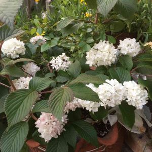 今頃、お花が咲いてます💦 蕾もありますよ😅 これはピンクオオデマリです。 ピンクじゃなくで白いですね〜😂 変なお天気が続いたせいでしょうか⁉️