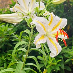 ヤマユリ 農家の庭のヤマユリ 広い庭に何株も咲く。