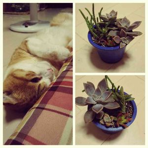 昨日、途中でやめた寄せ植えを完成させました🌱😁 結構苦悩した😅 多肉さんの種類を増やしたい❗ でも、同じ多肉使っていても...入れ物、配置で変わるから楽しい💕 リンゴの置物は手作りで~す😊