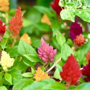 矮性ケイトウ 丸い鉢に寄せ植えしたら、お誕生日のケーキみたいでした
