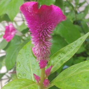 ケイトウの花、雨に打たれて元気いっぱい〜(*´∇`*)