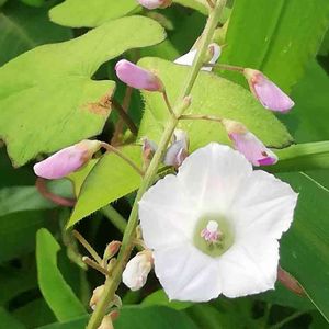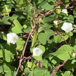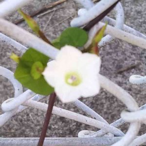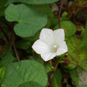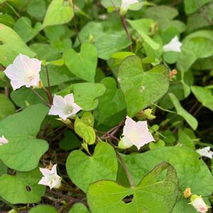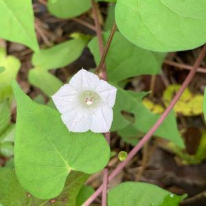 おはようございます😃 田んぼの畔で、マメアサガオを見つけました。 白いミニアサガオといった感じです。 周りに木がないので、地面を這って広がっています。 茎の色、葉っぱの形はサツマイモを連想させます。 アサガオがサツマイモ属であることが、 なるほどと納得できます。 ジャガイモの花は見るのに、 サツマイモの花は見たことがありません。 このマメアサガオの花のような花かもしれませんね。🤔