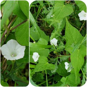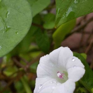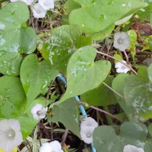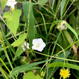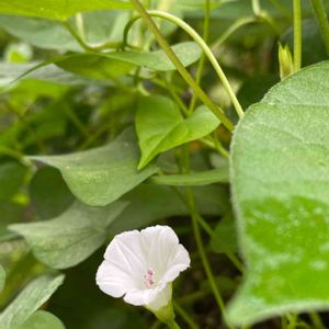 昨日の🐶散歩で可愛い花を見つけました。 草の陰から白い小さな花が咲いていて、かよちゃんから聞いたマメアサガオでは……❔ 用水路に降りないと撮影出来ないので、🐶を🏠に置いて出直したら、花が閉じていて……ガッカリ😵 今朝は、散歩前に行ってきました。 かわいい〰️💓