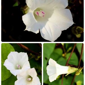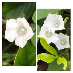 ホシアサガオに出会えました♬ 9月15日投稿はホシアサガオだ!と思ったのですが、ベニバナマメアサガオでした😲 昨日朝のウォーキングで道路から外れた場所で見たのはホシアサガオ、それも群生です♬ 右上:ホシアサガオ 右中:マメアサガオの白 右下:ほんのりピンクのマメアサガオ 左:ホシアサガオの群生 マメアサガオの方がスマート型 ホシアサガオの方がガッチリ型 に、見えました😄